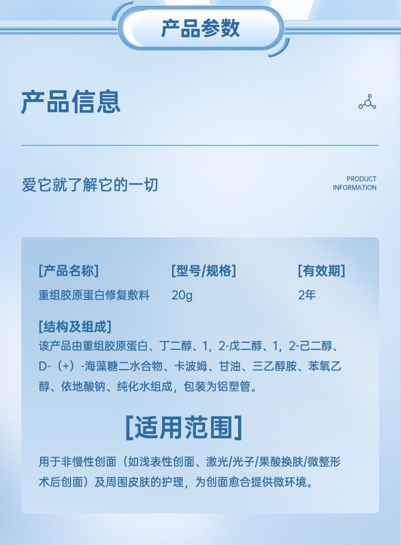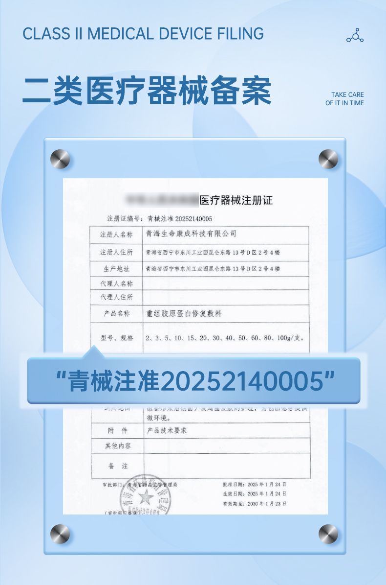 重组胶原蛋白修复敷料(青械广审(文)第 300123-04045 号)