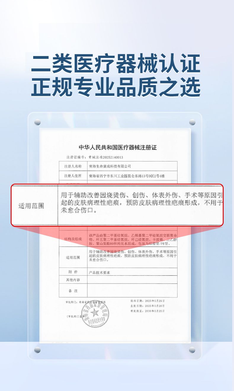 硅酮疤痕凝胶(青械广审(文)第 300125-04346 号)