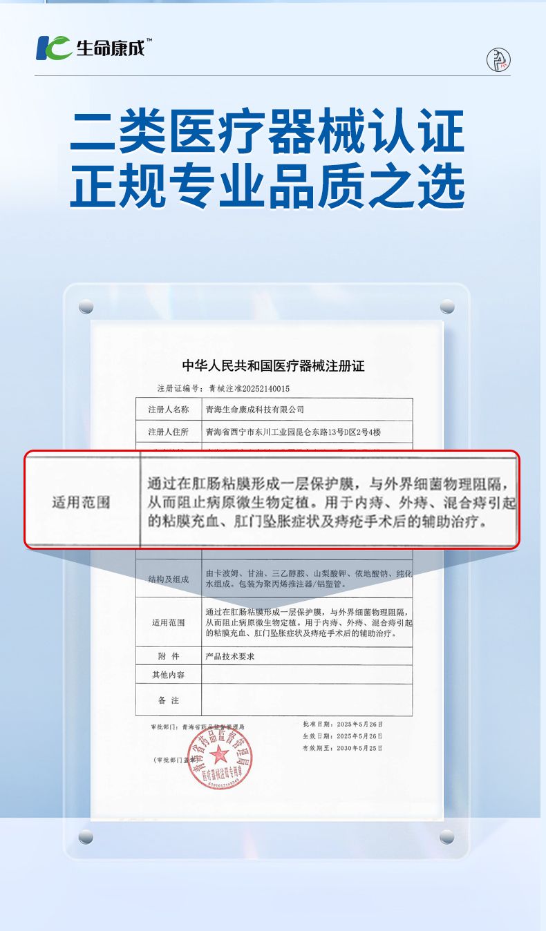 医用痔疮凝胶(青械广审(文)第 300125-04348 号)